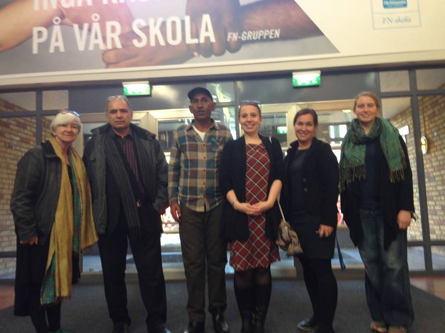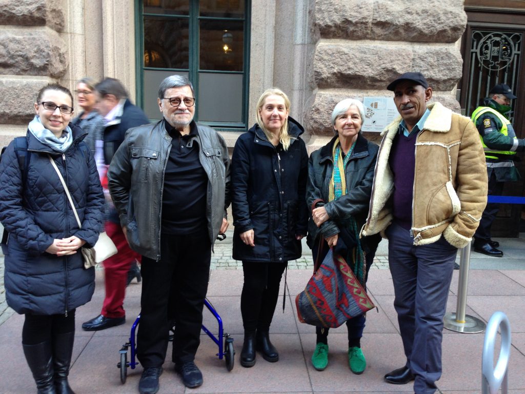 Eid abu Khamis (centre) together with Dr. Alice Panepinto (3rd from right) and Godfrey-Goldstein (left) outside a meeting held in Stockholm, October 2017